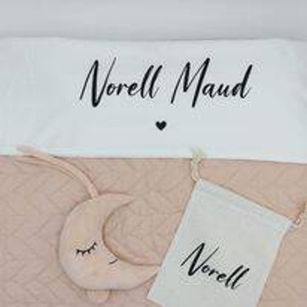 Wit ledikant lakentje met naam.